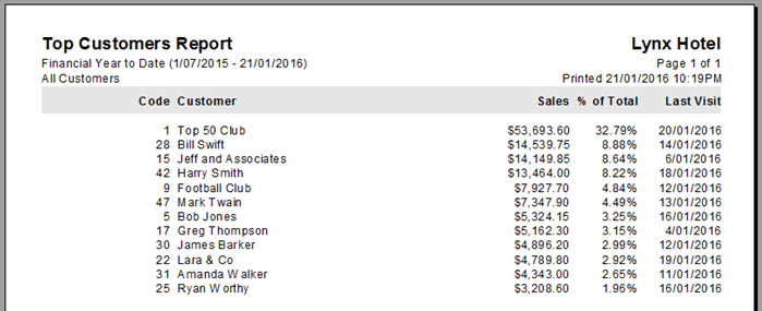 • Top Customers Report