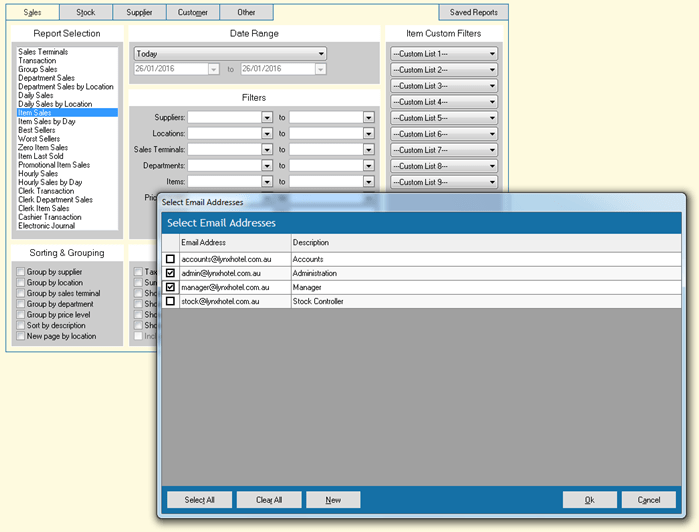 • Email Address selection dialog added to Reports, Listings and Scheduled Job maintenance